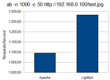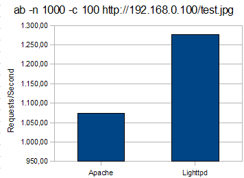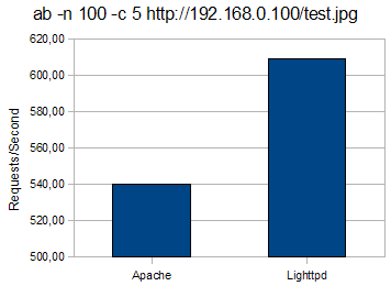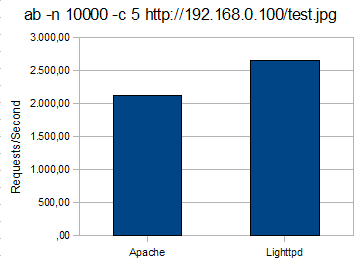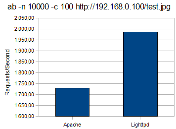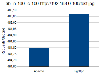 This benchmark shows how Apache2 (version 2.2.3) and lighttpd (version 1.4.13) perform compared to each other when delivering an image file (jpg, about 25KB in size). This benchmark was created with the help of ab (Apache benchmark) on a VMware vm (Debian Etch); if you try this yourself, your numbers might differ (depending on your hardware), but the tendency should be the same.