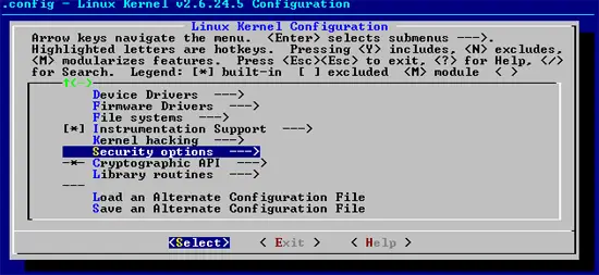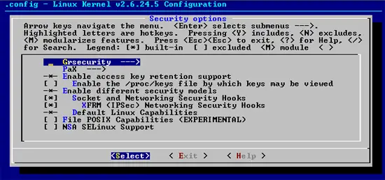 Now the patch is applied and the source of the kernel was modified. Let's configure the kernel to enable Grsecurity.