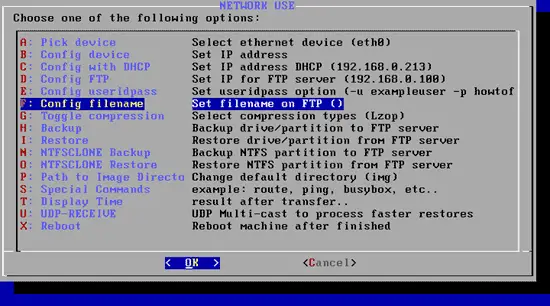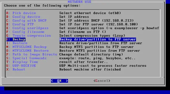 Finally, we can select H - Backup drive/partition to FTP server: