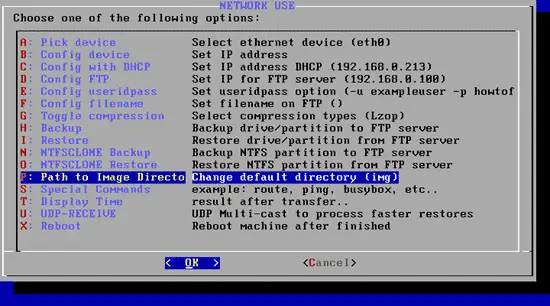 If you like to use a different directory than img (remember, the one we created in chapter 3), you can specify that under P - Change default directory: