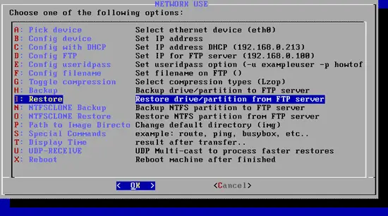 Finally, go to I - Restore drive/partition from FTP server: