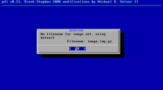 If you didn't specify the name of the backup image file, you will see this screen. Hit OK: