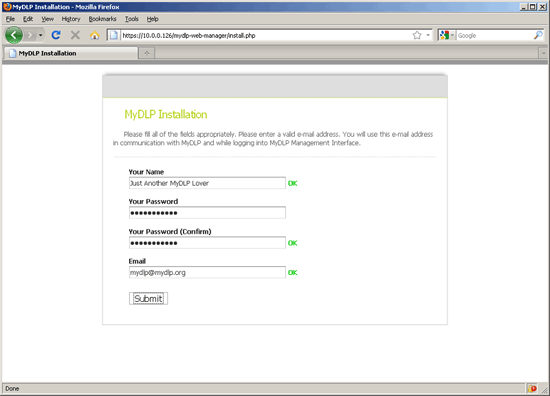 17. At this point, we have completed installation of the MyDLP Appliance. But, MyDLP is known to be easy, simple and open. One of the reasons which makes MyDLP easy and simple is its Web User Interface. In order to access the Web UI, it should be configured first. Enter https://YOURIPADDRESS in your browser, in this case https://10.0.0.126.
