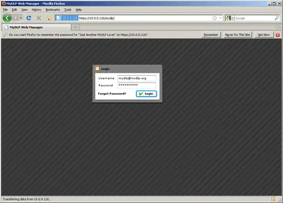 15. We should be able to log into the MyDLP Appliance with the username and password we have created before.