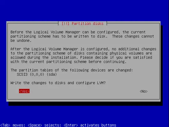 11. Select Yes and press Enter in order to write the new partition configuration to disk.