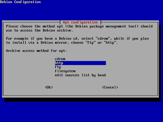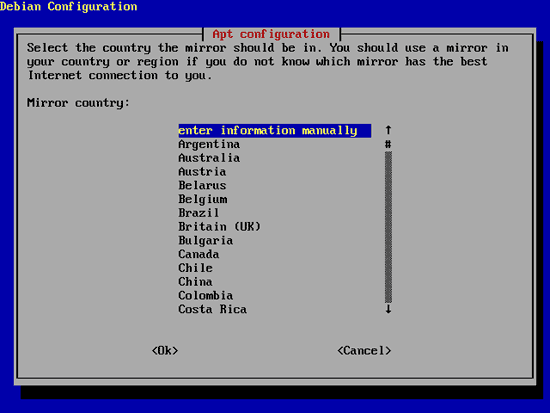 If you install a fresh Debian Sarge or Ubuntu Edgy Eft system, specify your local mirror like this when the installer asks you which repository you'd like to use: