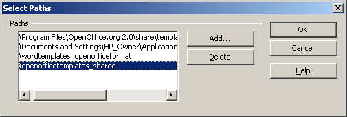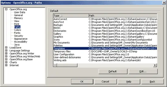 4. Go to OpenOffice.org > Paths and select the Templates line.