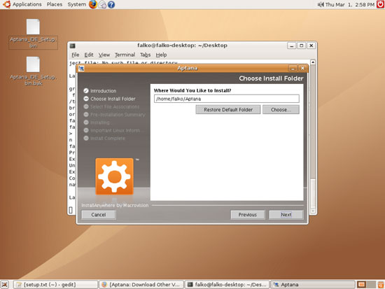 falko@falko-desktop:~/Desktop$ /bin/bash Aptana_IDE_Setup.bin