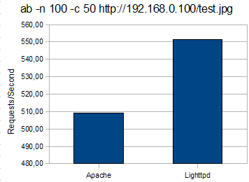 This benchmark shows how Apache2 (version 2.2.3) and lighttpd (version 1.4.13) perform compared to each other when delivering an image file (jpg, about 25KB in size). This benchmark was created with the help of ab (Apache benchmark) on a VMware vm (Debian Etch); if you try this yourself, your numbers might differ (depending on your hardware), but the tendency should be the same.