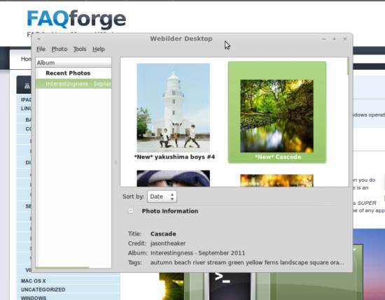 To browse the wallpapers already downloaded, leftclick the icon on the desktop panel again and choose Browse Photos. They are organized in recently downloaded photos and monthly categories, however you can also add your own albums: