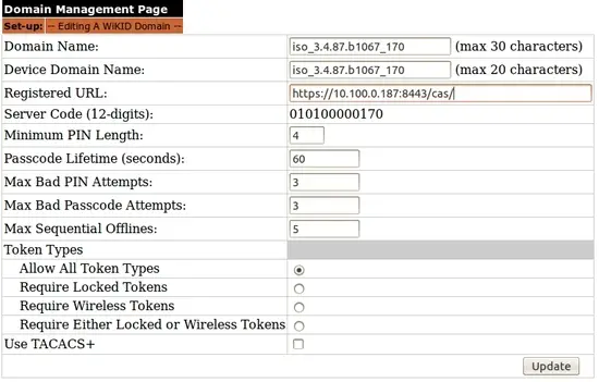 Now let's add mutual https authentication to the mix. Note that currently, mutual https authentication only supports port 443 - the assumption is that this product is benefiting the average user who can't detect a MiTM attack or validate a certificate. Go to the domains tab on the WiKIDAdmin and edit or create the domain you intend to use. Under the Registered URL, the URL for your CAS server: