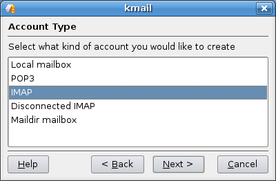 Finally you need to configure your new Linux e-mail client to access your IMAP folders. I use KMail here as an example, but you could really use any client that support IMAP.
