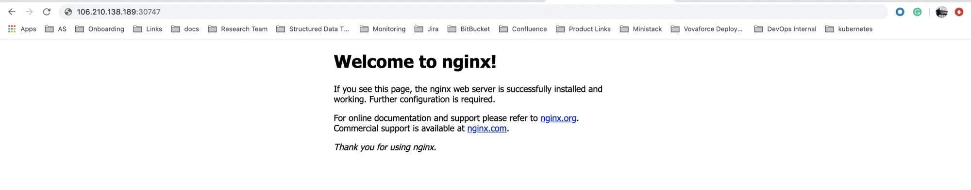 Now, the nginx application can be accessed through this service on NodeIp:NodePort
