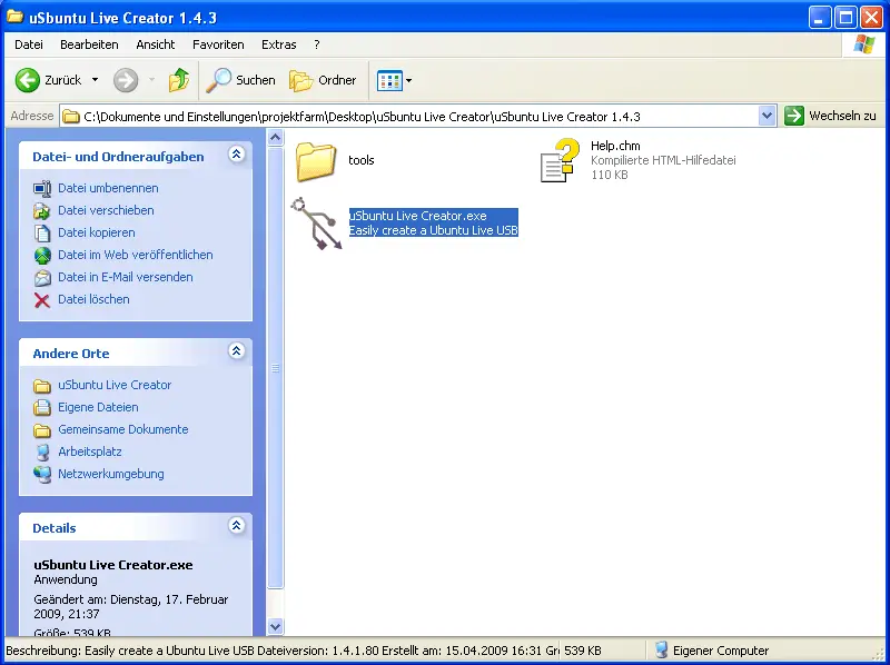 In that folder, you will find a Windows executable called uSbuntu Live Creator.exe. Double-click that file to start uSbuntu Live Creator: