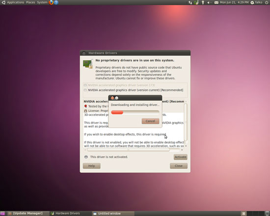 The Hardware Drivers tool should tell you that there are NVIDIA graphics drivers available for your system - select the recommended one. To install it, click on Activate:
