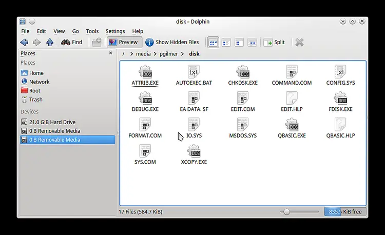 To be sure, many of these old diskettes contain data files of one sort or another and the files could be copied to a directory on my Linux system. Since I use Linux Mint KDE, I don't even have to manually mount the diskettes. Mint will offer to do that for me when the diskette is inserted. Open my file manager and I can simply drag and drop files to their new locations.