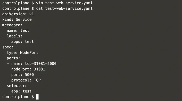 To access the frontend, we will create a service of type NodePort listening on Port 31081. This means the Python Flask Webserver can be accessed on IP=IP-Of-Any-Node and Port=31081. Create a new with the following service definition.