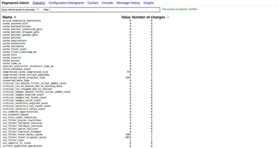 Mod_pagespeed module provides a simple and user-friendly web interface to view server state. You can enable Mod_pagespeed web interface by creating /pagespeed.conf file:
