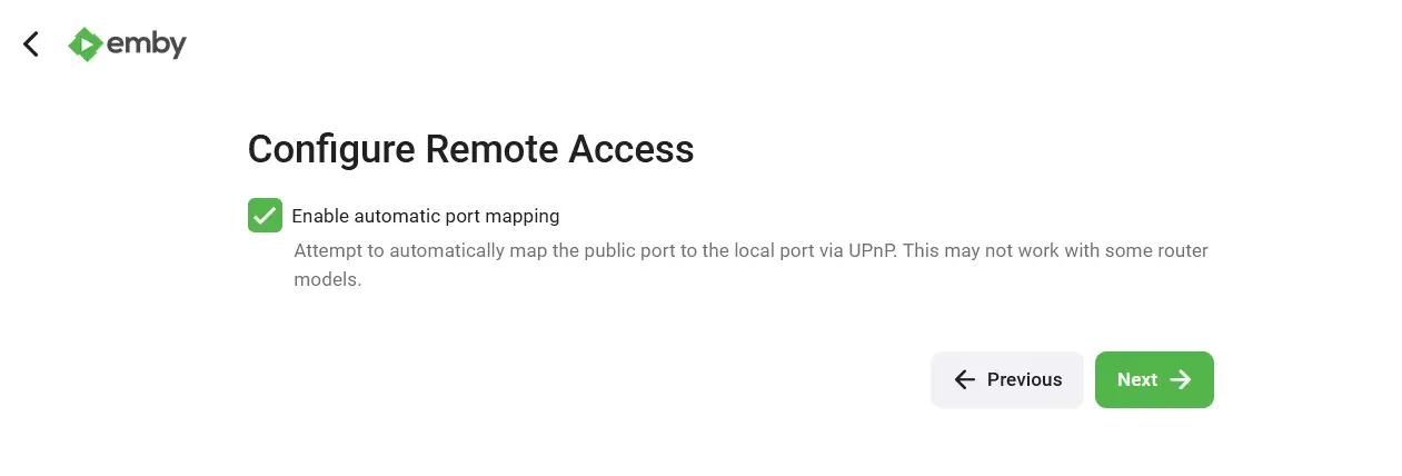 Once the admin user is created, you will be asked to create a new Library for Emby. You can configure the Libray later, so click Next again to continue.
