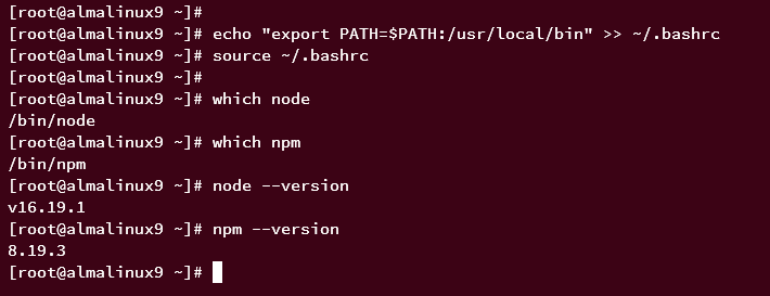 Once Node.js is installed, run the following command to add the /usr/local/bin directory to the PATH environment variable. This will ensure some binary files that are installed via NPM can be run on the server.