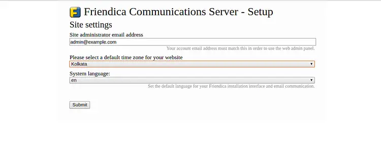 Provide your email address, select your timezone, language and click on the Submit button. You should see the following page: