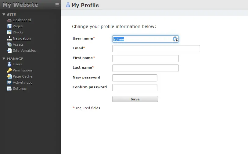 On the page that opens, you can change your password. You should also change your default username and add an email address. You will also have to fill your name to proceed. Save to proceed when you are finished.