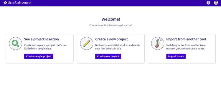 Provide your project name and key, then click on the Submit button. You should see the Jira dashboard on the following screen: