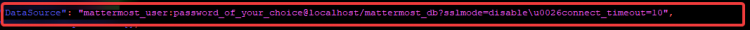 - localhost: keep this value as it is if you installed Mattermost and MySQL on the same server. If you installed Mattermost and MySQL database on different servers, you will need to replace this value with the IP address of the server where you installed MySQL.
