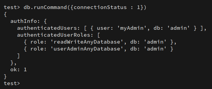 After logging in, run the following query to check the connection status to the MongoDB server.