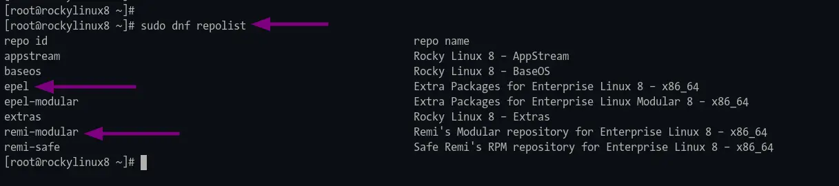 When the installation is complete, verify the epel and Remi repository using the following command.