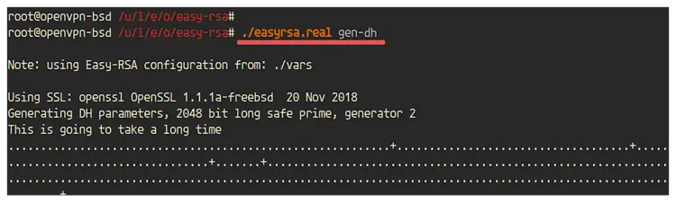 Go to the '/usr/local/etc/openvpn/easy-rsa/' directory and initialize the Public Key Infrastructure (PKI) directory using the 'easyrsa.real' command as below.