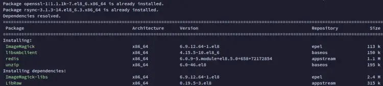 sudo dnf install libsmbclient redis unzip libzip bzip2 openssl rsync ImageMagick
