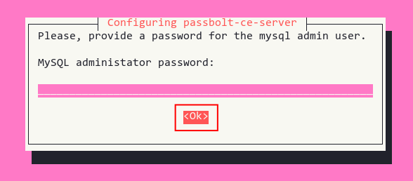 For the database user that will be used for Passbolt, you can change with your user or leave it as default with 'passboltadmin' and select Ok.