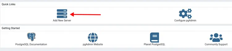 1. At the pgAdmin dashboard, click the icon 'Add New Server'.