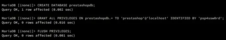 After configuring the MariaDB server, you will create a new database and user for PrestaShop.