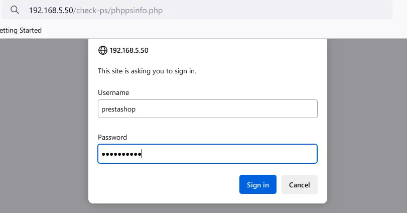 Lastly, open your web browser and visit your server IP address followed by the path of PrestaShop checker, such as http://192.168.5.50/check-ps/phppsinfo.php.
