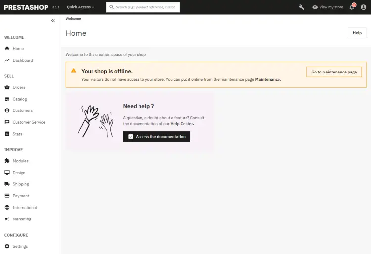 You can start using Prestashop from here on.