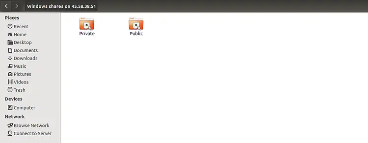 Provide your Samba server IP address and click on the Connect button. After a successful connection, you should see the Samba share in the following screen: