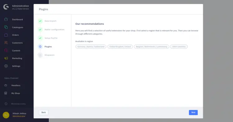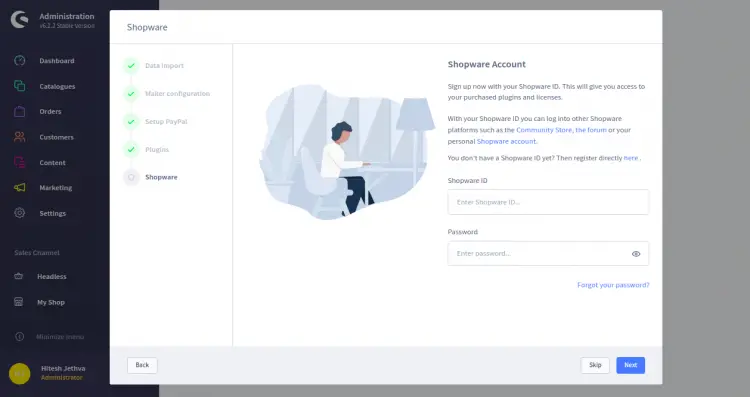 Click on the Skip button. Once the Shopware is configured, you should see the following screen:
