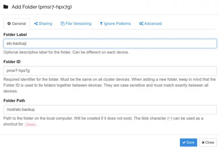 Provide your folder label, folder path, and click on the Sharing tab. You should see the following screen: