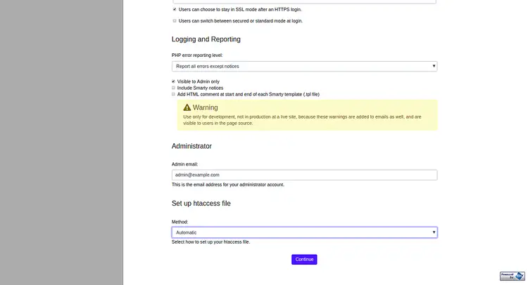 Confirm your system meet the minimum requirements and click on the Continue button. You should see the following page: