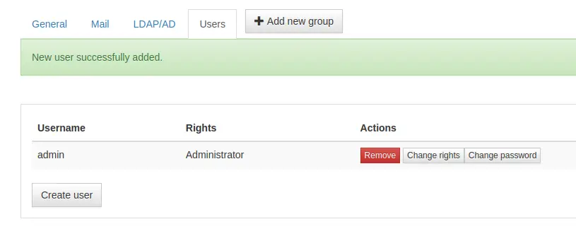 Input the new username and password for the urBackup administrator and click 'Create'.