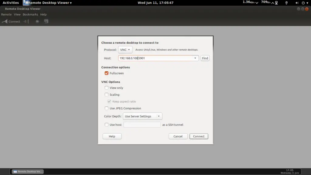Enter the password as VNC password that you had set for the user "srijan" on the server.