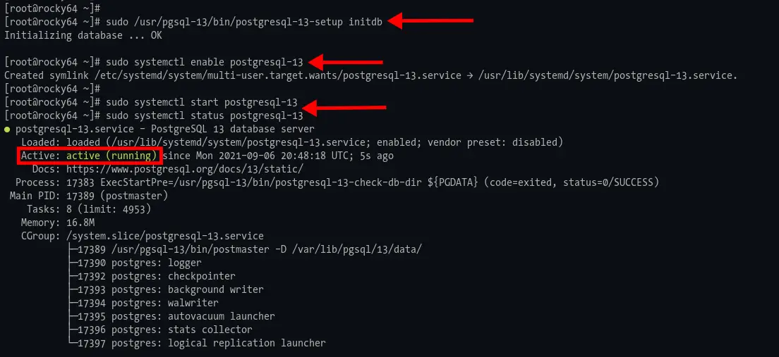sudo systemctl start postgresql-13