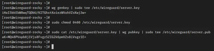 Your Rocky Linux server now has the 'wireguard' kernel module enabled and the 'wireguard-tools' installed. Next, you'll go over how to generate key pairs for both the Wireguard server and client via the wireguard-tools.