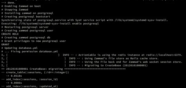 After the installation is complete, run the zammad command below to set up integration with Elasticsearch and rebuild the search index in Elasticsearch.