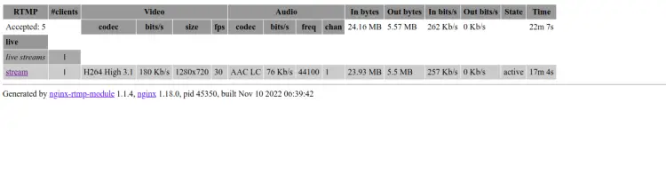 At this point, your RTMP server is installed and working. Now, you will need to configure the RTMP statistics page to monitor your streaming.