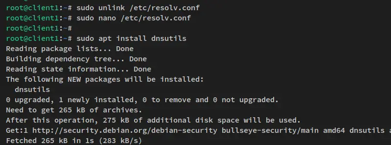 Next, run the below command to install the 'dnsutils' package to the client machine.