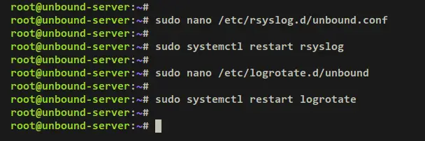 In addition to that, you'll also set up logging for Unbound service via Rsyslog and Logrotate.