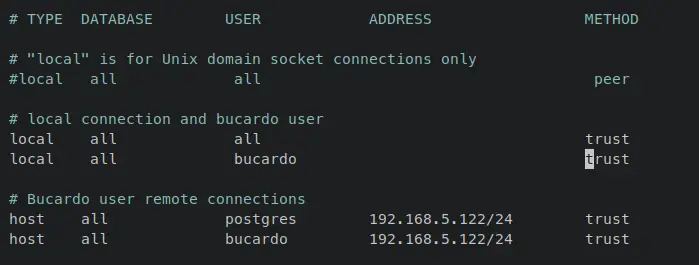 With this, you have now finished the installation of the PostgreSQL 15 server, configured the database and user for Bucardo, and also configured PostgreSQL listen_addresses and authentication.